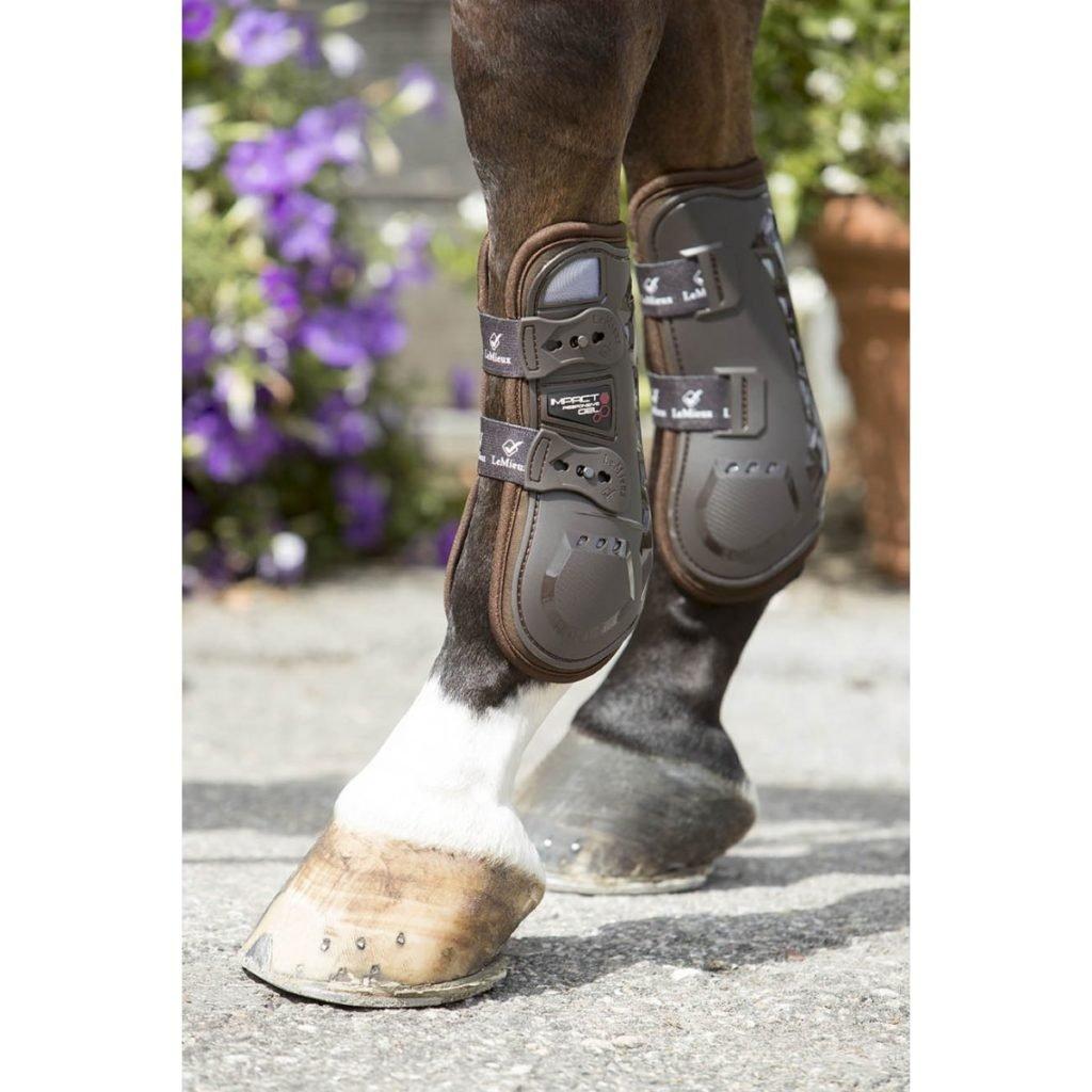 Tendon boots are similar to the brushing boots. However tendon boots are typically constructed from a hard-wearing shell for further protection and impact absorption. They are used for all types of riding and disciplines, but are more commonly used for jumping. (i.e. Show-jumping, eventing, cross-country). When jumping, there is a higher risk of the hind legs catching and striking the front legs over jumps. Open front boots are also preferred as it gives the horse more leg-to-pole awareness. Designed mainly to protect the horse's leg tendons, they also provide protection to the lower leg ligaments and fetlocks.